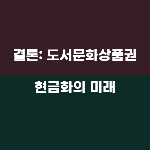 도서문화상품권을 현금으로 바꾸는 것은 단순한 거래가 아니라, 우리의 경제적 유연성을 높이는 방법입니다. 따라서, 이러한 과정을 통해 보다 나은 경제적 선택을 할 수 있는 기회를 마련하는 것이 필요합니다. 이제는 더 이상 상품권이 단순한 종이 조각이 아닌, 우리의 경제적 자산으로 자리 잡을 수 있도록 현명한 선택을 해보세요.